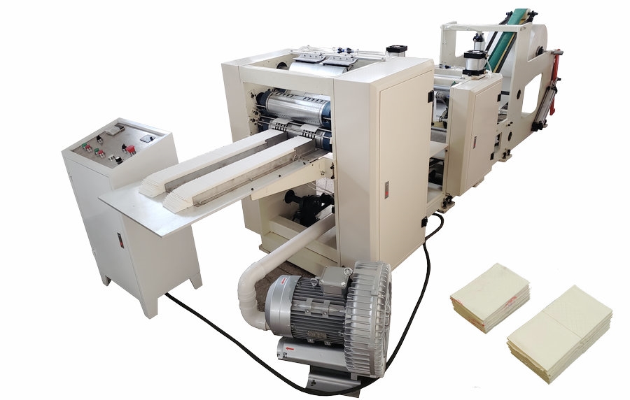 CIL-MFT-21迷你型全自動手巾紙機采用真空吸附,高速自動疊紙。本機制造精度高,無級調速,動作準確,是四折疊面紙巾的專用設備,本機主要由原紙放卷裝置,壓紋裝置,縱向折疊裝置,切紙及橫向折疊組成。生產流程是:放卷→壓紋→縱向折疊→拉紙→切紙→橫向折疊→成品擠送。